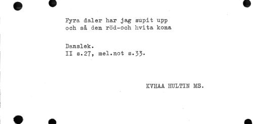//// Fyra daler har jag supit upp //// och så den röd-och hvita kona //// Danslek. //// II s.27y mel.not s.33. //// KVHÅA UULTIN MS. //// i //// ! //// t ////