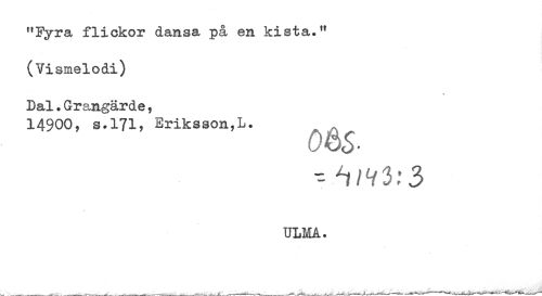 //// "Fyra flickor dansa på en kista." //// (Vismelodi) //// Dal.Grangärde, //// 14900, s.171, Eriksson,L. ^y^f ////