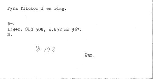 //// Fyra flickor i en ring. //// Br. //// l:4+r. SLS 508, s.852 nr 367. //// N. //// / ^ g //// ÅBO, ////
