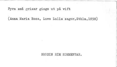 //// Fyra små grisar gingo ut på vift //// (Anna Maria Roos, Luve Lulls sagor,Sthim,1898) //// BRODIN RIM KOMMENTAR. ////