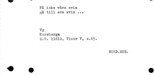 //// Få icke våra svin //// gå till era svin ... //// Vg //// Korsberga //// E.U. 21610, Visor V, s.65. //// NORD. ms. ////