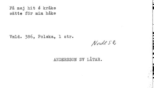 //// Få mej hit é kråke ! //// sätte för min håke //// Vmld. 386, Polska, 1 str. ^ //// ANDERSSON SV LÅTAR. ////