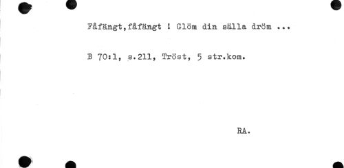 //// Fåfängt,fåfängt ! Glöm din sälla dröm ... //// B 70:1, s.211, Tröst, 5 str.kom. //// . //// RA. ////