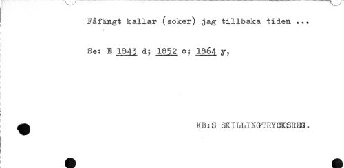 //// Fåfängt kallar (söker) jag tillbaka tiden ... //// Se: E 1845 d; 1852 o; 1864 y, //// * //// ^ KB:S SKILLINGTRYCKSREG. ////