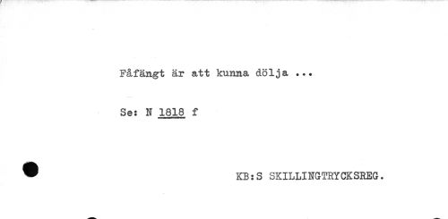 //// Fåfängt är att kunna dölja ... //// Se: N 1818 f //// ^ KB:S SKILLINGTRYCKSREG. ////