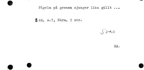 //// Fågeln på grenen sjunger lika gällt ... //// g s.7, Nära, 2 str. //// RA. ////
