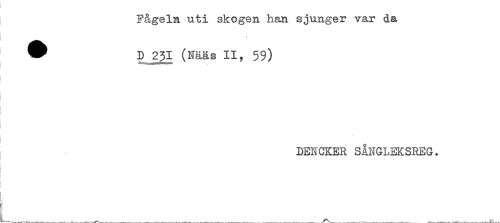 //// Fågeln uti skogen han sjunger var da //// ^ D 231 (Nääs II, 59) //// ) //// i //// ; //// /DENCKER SÅNGLEKSREG. //// : //// : //// i ////