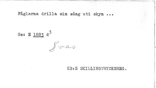 //// Fåglarna drilla sin sång uti skyn ... //// Se: E 1885 d^ //// KB:S SKILLINGTRYCKSREG. //// L ////