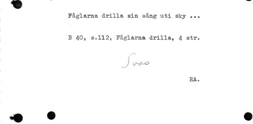 //// Fåglarna drilla sin sång uti sky ... //// B 40, s.112, Fåglarna drilla, 4 str. //// . //// RA. ////