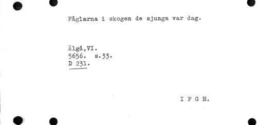 //// Fåglarna i skogen de sjunga var dag. //// Ålgå,VI. //// 5656. s.33. //// D 231. //// ! ////
