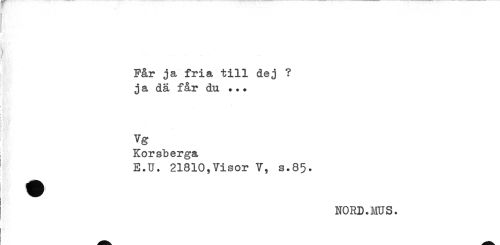 //// ]! //// Får ja fria till dej ? //// j a da får du ... //// i //// t //// i //// 1 V //// Vg //// Korsberga //// E.U. 21810,Visor V, s.85. ////