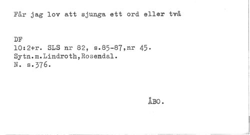//// Får jag lov att sjunga ett ord eller två //// DF //// 10:2+r. SLS nr 82, s.85-87,nr 45* //// Sytn.m.Lindroth,Rosendal. //// N+ s.376. 1 //// j //// ÅBO. ////