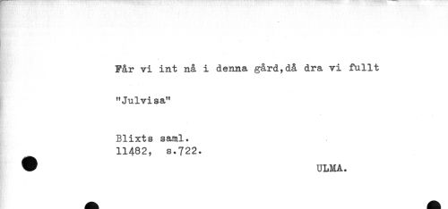 //// Får vi int nå i denna gård,då dra vi fullt //// "Julvi sa" //// Blixts saml. //// 11482, s.722. //// ^ ULMA. ////