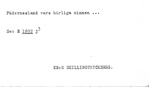 //// Fädernesland vars hårliga minnen ... //// Se: E 1892 //// KB:S SKILLINGTRYCKSREG. ////