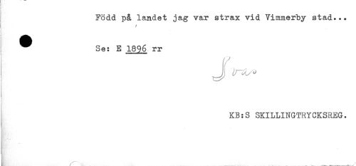 //// Född på landet jag var strax vid Vimmerby stad*** //// ^ Se: E 1896 rr //// J ^ //// i //// KB:S SKILLINGTRYCKSREG. //// 1 ////