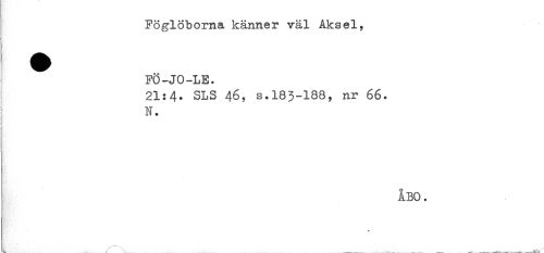 //// Föglöborna känner väl Åks el, //// ^ FÖ-JO-LE. //// 21:4. SLS 46, s.183-188, nr 66. //// N. //// i //// r //// i //// jt //// ) //// t ÅBO. ////