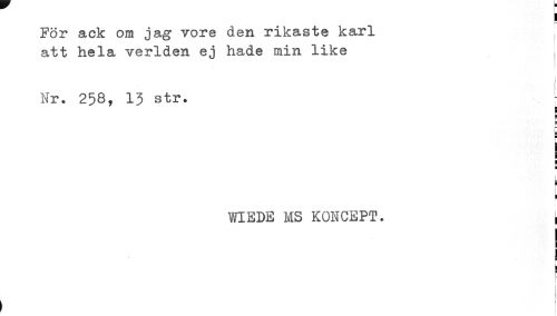 //// För ack om jag vore den rikaste karl //// att hela verlden ej hade min like //// Nr. 258, 13 str. //// [ //// H //// VHEDE MS KONCEPT. ^ //// } //// < //// i //// i ////