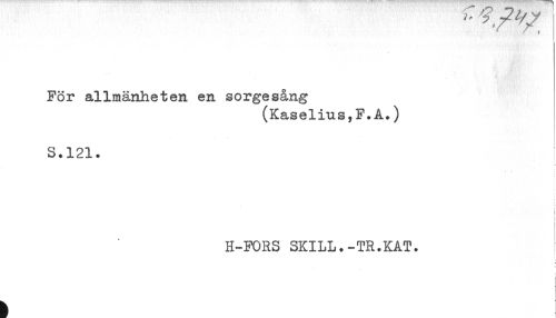 //// För allmänheten en sorgesång //// (Kaselius,F.A.) //// S.121. //// i //// H-FORS SKILL.-TR.KAT. ////