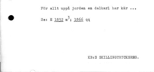 //// För allt uppå jorden en dalkarl har kär ... //// ^ ^ Se: E 1852 m^; 1866 qq //// t //// KB:S SKILLINGTRYCKSREG. //// j //// i //// //// /