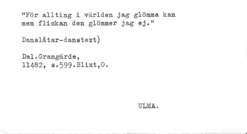 //// "För allting i världen jag glömma kan //// men flickan den glömmer jag ej." //// Danslåtar-danstext) //// Dal.Grangärde, //// 11482, s.599.Blixt,0. ////