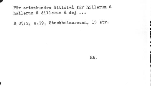//// För artonhundra åttiotvå för hiHeruia å //// hallerum å dillerum å dej ... ; //// B 85:2, s.39, Stockholmsresan, 15 str. ^ //// t //// H //// : //// r //// i //// i //// I //// ! //// RA. //// i //// * //// 1 //// } //// I //// ! //// ^ ! ////