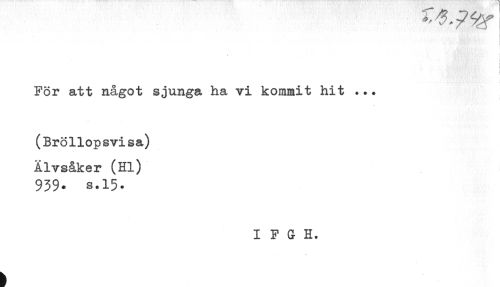 //// För att något sjunga ha vi kommit hit ... //// (Bröllopsvisa) //// Älvsåker (Hl) //// 939. s.15. //// h ////