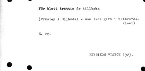 //// För blott trettio &r tillbaka //// (Prästen i Silbodal - som lade gift i nattvards- //// vinet) //// S. 22. ////