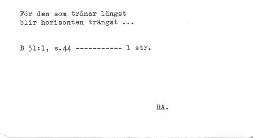 //// För den som trånar längst //// blir horisonten trängst ... //// B 51:1, s.44-----1 str. //// RA. ////