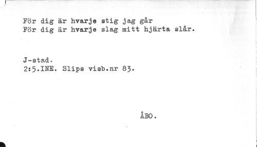 //// För dig är hvarje stig jag går //// För dig är hvarje slag mitt hjärta slår. //// i //// * //// *: //// J-stad. j //// 2:5.INE. Slips visb.nr 83. //// i //// t //// - ) //// ÅBO. //// i //// t ////