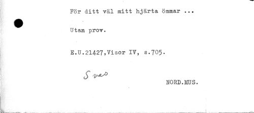//// För ditt väl mitt hjärta ömmar ... //// ]!.-, //// Utan prov. //// < //// ! E.U.21427,Visor IV, s.705. //// NORD.MUS. //// ! . //// < //// - t,- __-. ... - _ _ _ . .^-r- _____ ^ ^ - ..... --...- ////