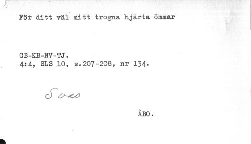 //// -* - //// För ditt väl tnitt trogna hjärta ömmar //// GB-KB-NV-TJ. //// 4:4, SLS 10, s.207-208, nr I34. //// ÅBO. ////