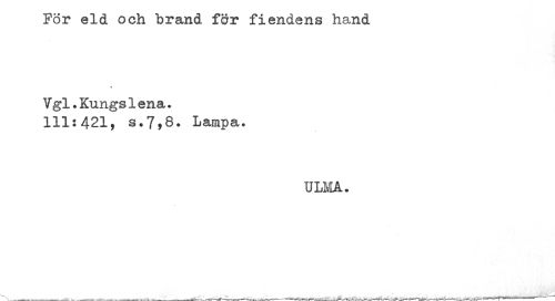 //// För eld och brand för fiendens hand //// * //// Vgl. Kungs 1 ena. //// 111:421, s.7*3. Lampa. //// ULMA. ////