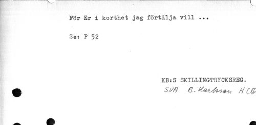 //// För Er i korthet jag förtälja vill ... //// Se: P 52 //// KB:S SKILLINGTRYCKSREG. ////