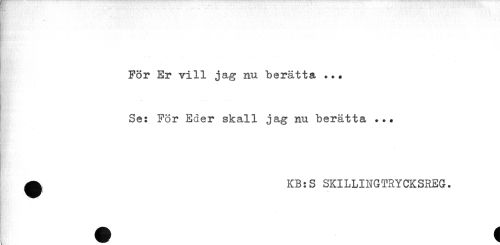 //// För Er vill jag nu berätta ... //// Se: För Eder skall jag nu berätta ... //// ^ KB:S SKILLINGTRYCKSREG. ////