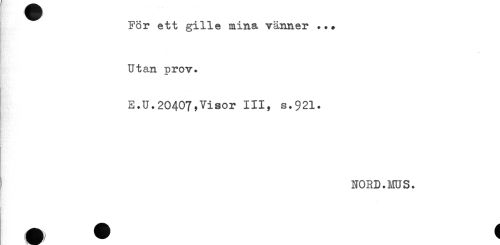 //// För ett gille mina vänner ... //// Utan prov. //// E.U.20407,Visor III, s.921. //// a. //// s NORD.MU S. ////