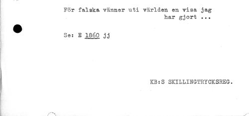 //// För falska vänner uti världen en visa jag //// har gjort ... //// ^ Se: E 1860 jj //// t //// KB:S SKILLINGTRYCKSREG. //// n ////
