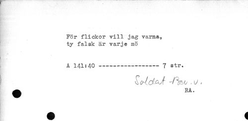 //// För flickor vill jag varna, //// ty falsk är varje mö //// * //// A 141:40-----7 Str. //// ! ^, ^, //// ^ RA. ////