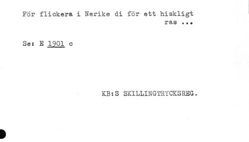 //// För flickera i Nerike di för ett hiskligt //// ras ..* //// Se: E 1901 c //// KB:S SKILLINGTRYCKSREG. ////