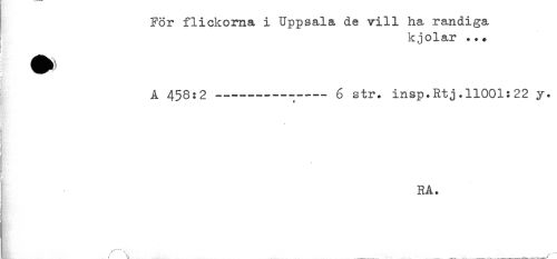 //// För flickorna i Uppsala de vill ha randiga //// kjolar ... //// < //// jHzM-Y' //// A 458:2 ----- 6 str. insp.Rtj.11001:22 y. //// <- //// ! //// j' //// RA. ////