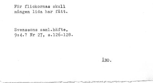 //// For flickornas skull //// mången lida har fått. //// Svenssons saml.häfte, //// 9:4.? Nr 27, s.126-128. //// ÅBO. ////