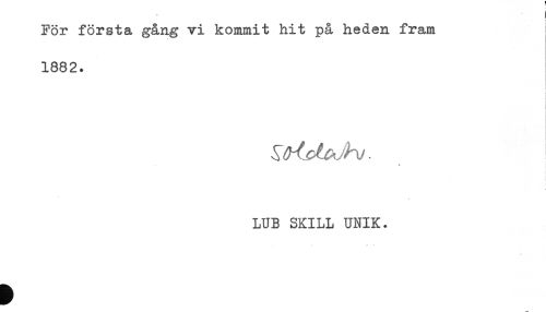 //// För första gång vi kommit hit på heden fram //// 1882. //// } //// i //// * //// LUB SKILL UNIK. ////