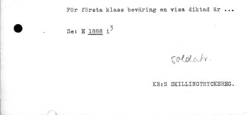 //// För första klass beväring en visa diktad är ... //// ^ Se: E 1888 i^ //// t //// ^p-^.f Jv - //// KB:S SKILLINGTRYCKSREG. ////