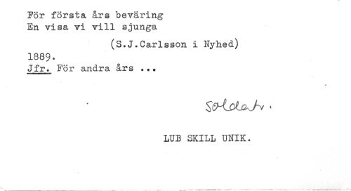 //// För första års beväring //// En visa vi vill sjunga //// (S.J.Carlsson i Nyhed) //// 1889- //// Jfr. För andra års ..+ //// LUB SKILL UNIK. ////