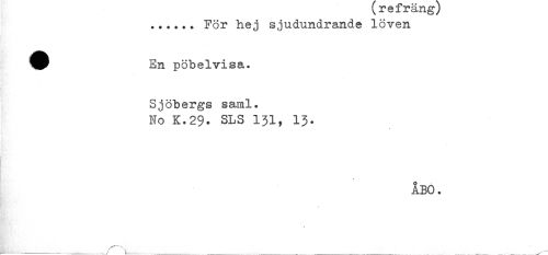 //// ^reirang; //// ...... För hej sjudundrande löven //// ^^ En pöbelvisa. //// Sjöbergs saml. //// No K.29^ SLS 131, 13. //// ÅBO. //// . //// ...v U-____. _ ////