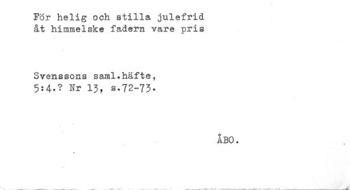 //// För helig och stilla julefrid //// åt himmelske fadern vare pris //// Svenssons saml.häfte, //// 5:4.? Nr 13, s.72-73. //// ÅBO. //// * ////