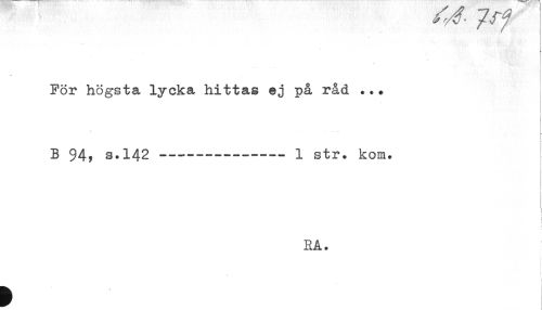 //// För högsta lycka hittas ej på råd ... //// B 94, s.142-----1 str. kom. //// RA. ////