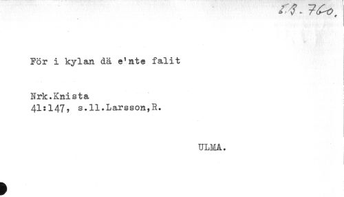//// ** L //// För i kylan dä e'nte falit //// * ! //// < //// Nrk.Knista //// 41:147 ? s. 11.Larsson,R. //// i //// ULMA. ////