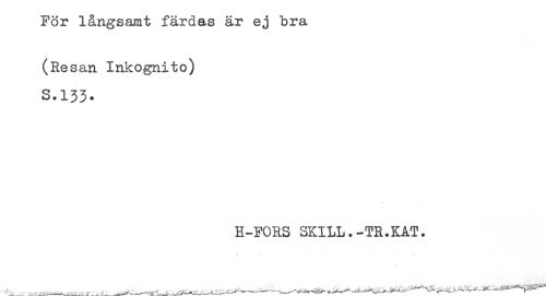 //// För långsamt färdas ar ej bra //// (Resan Inkognito) //// S.133. //// H-FORS SKILL.-TR.KAT. ////