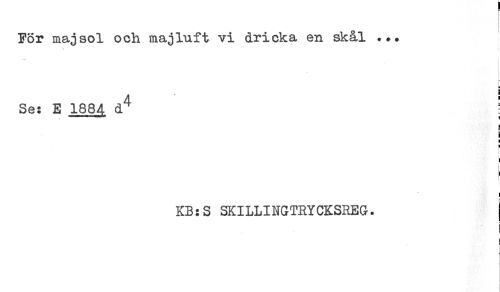//// För maj sol och majluft vi dricka en skål ... //// ' ; //// 4 ' //// Se: E 1884 d^ //// < //// = //// i //// t //// ! //// i //// < //// ! //// KB:S SKILLINGTRYCKSREG. //// I //// ! ////