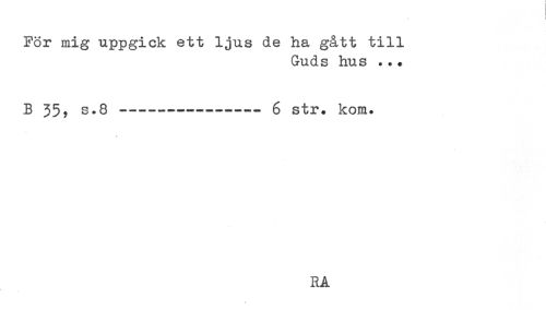 //// För mig uppgick ett ljus de ha gått till //// Guds hus ... //// B 35? s.8---6 str. kom. //// RA ////
